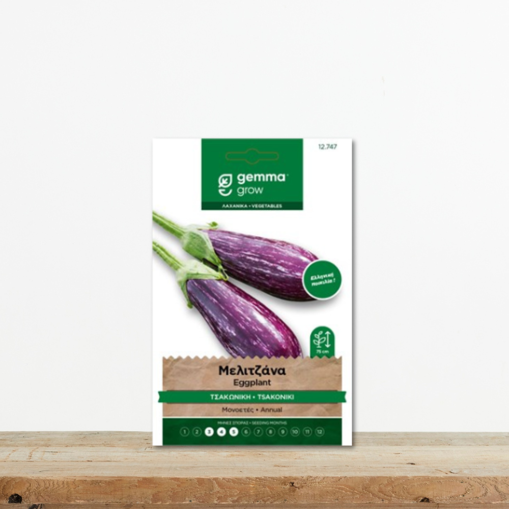 Η Τσακώνικη Μελιτζάνα αποτελεί την κορυφαία ελληνική επιλογή για κάθε λαχανόκηπο. Είναι μια εξαιρετικά παραγωγική ποικιλία, διάσημη για το επιμήκες κυλινδρικό σχήμα των καρπών της και τις χαρακτηριστικές λευκές-βιολετί ρίγες. Η μοναδική, γλυκιά της γεύση την καθιστά την ιδανική επιλογή για παραδοσιακά πιάτα, όπως τα παπουτσάκια και η μελιτζανόπιτα.