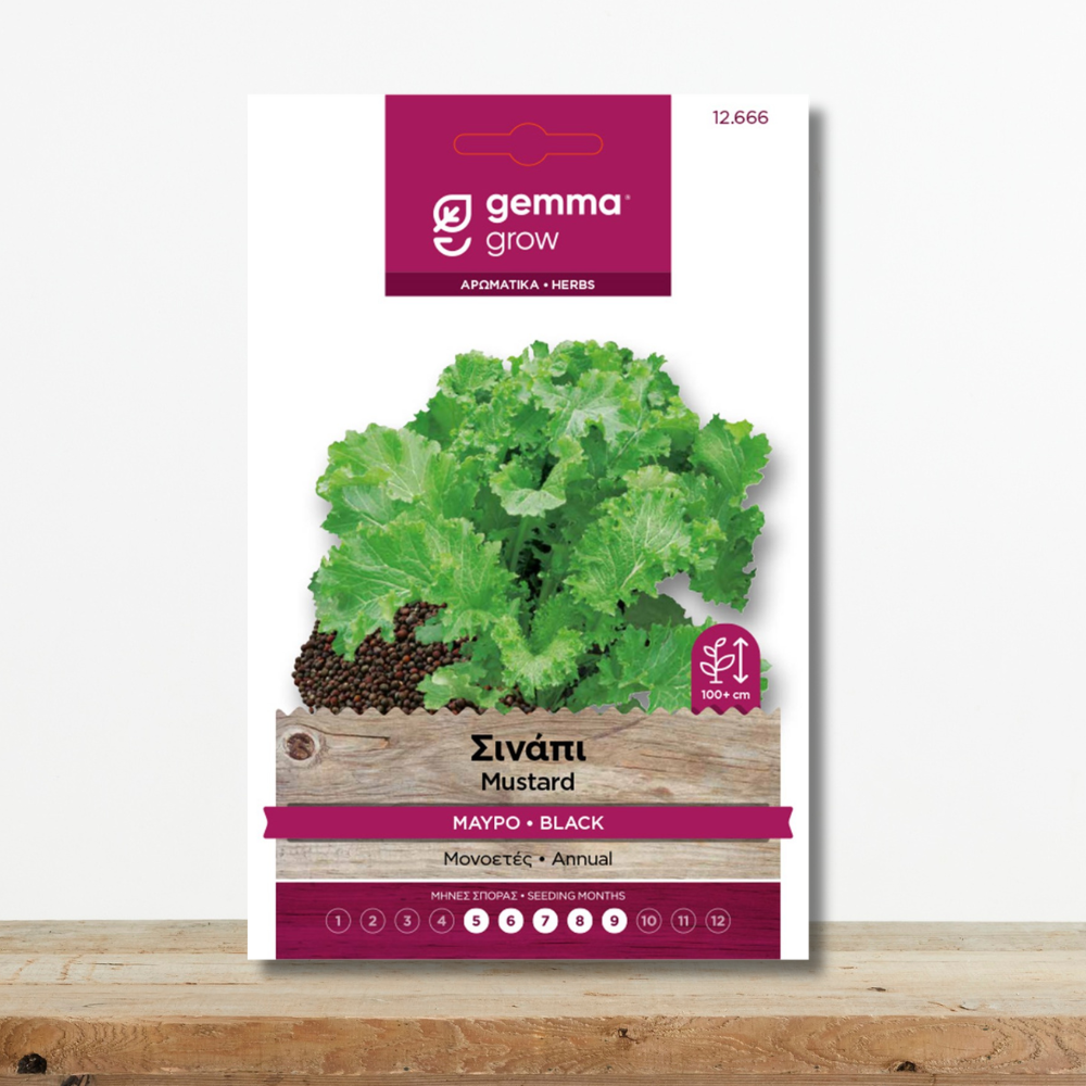 Μονοετές φυτό με εδώδιμα φύλλα και σπόρους, ιδανικό για την παρασκευή μαύρης μουστάρδας και πικάντικες σαλάτες.