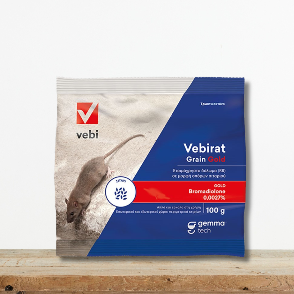 Το Vebirat Grain είναι ένα ισχυρό αντιπηκτικό τρωκτικοκτόνο 2ης γενιάς σε μορφή εμποτισμένου σιταριού. Είναι ειδικά σχεδιασμένο για να παραμένει ελκυστικό ακόμα και σε συνθήκες υψηλής θερμοκρασίας, καθιστώντας το την ιδανική επιλογή για αποθήκες, σοφίτες και εξωτερικούς χώρους κτιρίων. Χάρη στη δραστική ουσία Bromadiolone, αρκεί ένα μόνο γεύμα για να εξολοθρευτεί ο “εισβολέας”.